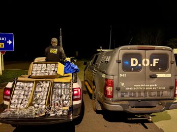 Policiais militares do DOF (Departamento de Operações de Fronteira) apreenderam, na manhã desta quinta-feira (2), mais de 160 quilos de maconha e haxixe, que eram transportados em um veículo GM Corsa. A apreensão ocorreu na cidade de Laguna Carapã. Na