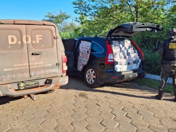 Policiais militares do DOF (Departamento de Operações de Fronteira) apreenderam, neste sábado (7), na MS-480, em Batayporã, um Honda CR-V carregado com dois mil pacotes de cigarros contrabandeados do Paraguai. Na ação, ninguém foi preso. Os militares