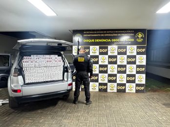 Policiais militares do DOF (Departamento de Operações de Fronteira) apreenderam, nesta segunda-feira (10), na BR-376, em Deodápolis, um veículo MMC Outlander carregado com 1.800 pacotes de cigarros contrabandeados do Paraguai. Na ação, um homem de 28
