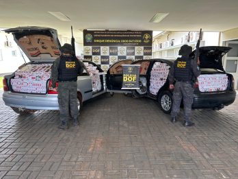 Policiais militares do DOF (Departamento de Operações de Fronteira) apreenderam, neste sábado (7), em Rio Brilhante, um GM Astra e um VW Polo carregados com 1.750 pacotes de cigarros contrabandeados do Paraguai. Na ação, ninguém foi preso. Os militares