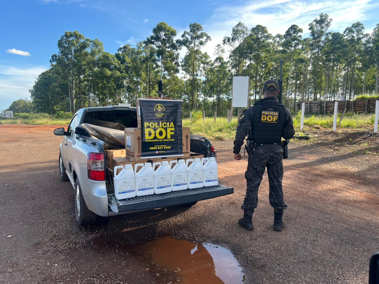 Policiais militares do DOF (Departamento de Operações de Fronteira) apreenderam, nesta quinta-feira (8), na MS-164, em Ponta Porã, um veículo GM Montana carregado com 250 litros de defensivos agrícolas contrabandeados do Paraguai. Na ação, um homem de 48 anos foi preso.
