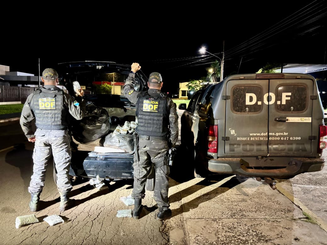 Policiais militares do DOF (Departamento de Operações de Fronteira) apreenderam, neste domingo (14), em Amambai, um veículo GM Celta carregado com 105 quilos de maconha, 40 quilos de skunk e 10 quilos de haxixe marroquino.