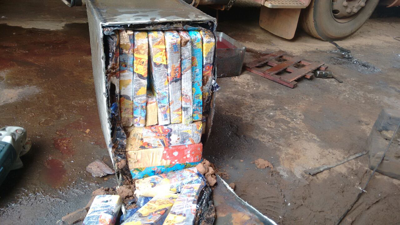 Em vistoria e checagem, foi constatado que os tanques de combustível do caminhão estariam com marcas de movimentação recente, o que levantou a suspeita dos policiais com relação ao que poderia estar no interior do tanque de combustível do veículo.