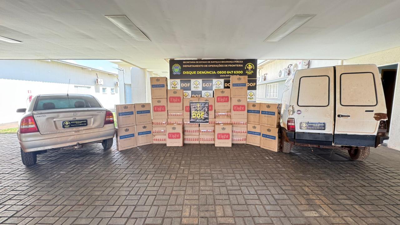 Policiais militares do DOF (Departamento de Operações de Fronteira) apreenderam, nesta quinta-feira (6), em Dourados, dois veículos que estavam sendo carregados com 2 mil pacotes de cigarros contrabandeados do Paraguai em um entreposto de contrabandistas. Na ação, um homem de 41 anos foi preso em flagrante.