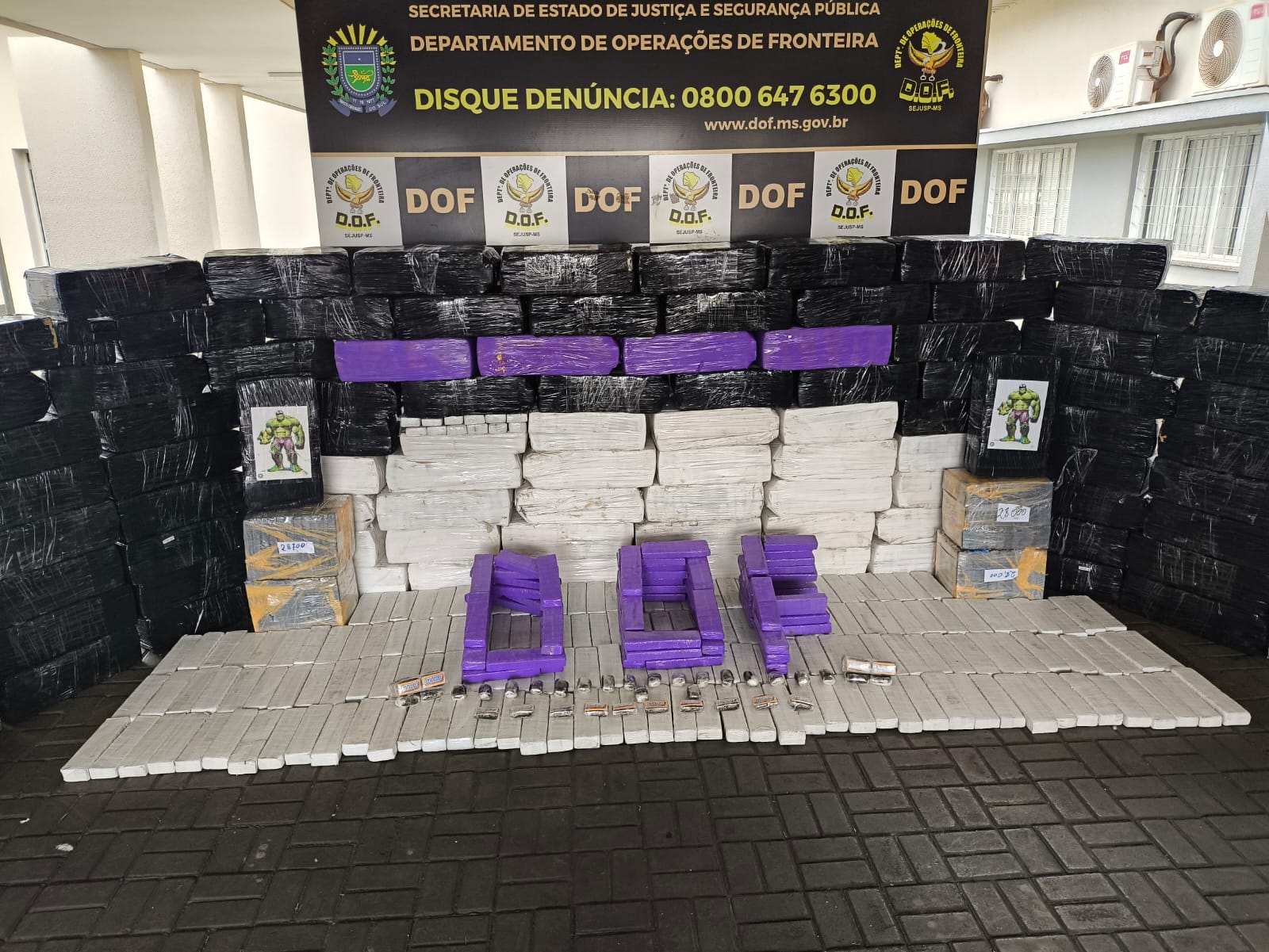 O material apreendido foi avaliado em aproximadamente R$ 8,3 milhões e encaminhado à Delegacia Especializada em Repressão aos Crimes de Fronteira (Defron), em Dourados.
