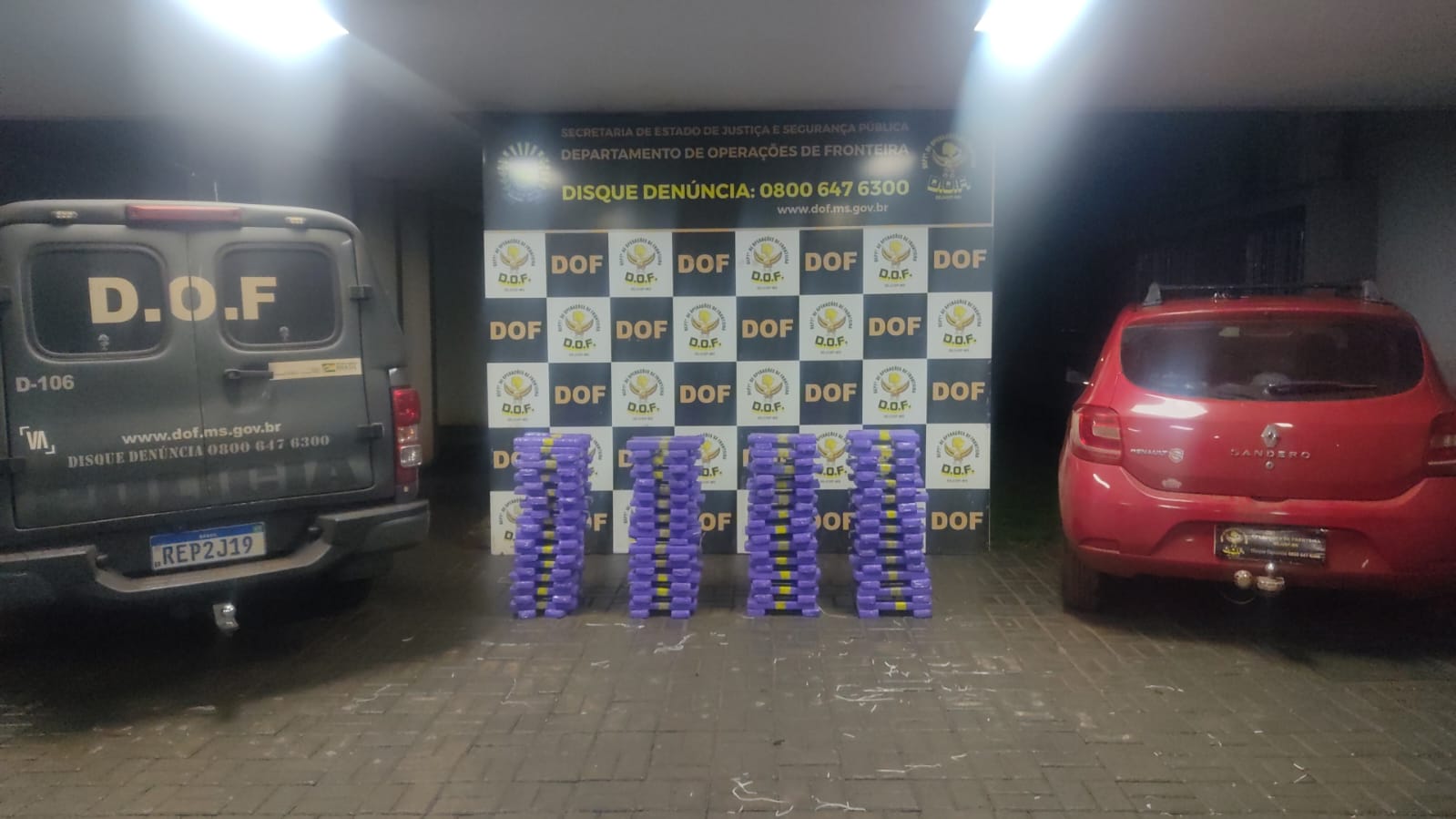 Durante a vistoria veicular localizou-se no porta-malas 192 volumes prensados de maconha, com peso total de 171,8 quilos. Questionado sobre a droga, o homem mudou a versão e disse que chegou com o veículo em Amambai na manhã do sábado; que o deixou em uma praça e esperou em uma pousada, até pegar o Sandero já carregado.