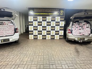 Policiais militares do DOF (Departamento de Operações de Fronteira) apreenderam, neste domingo (1), no distrito de Vila Vargas, em Dourados, dois veículos carregados com 4.400 pacotes de cigarros contrabandeados do Paraguai. Na ação, ninguém foi preso.
