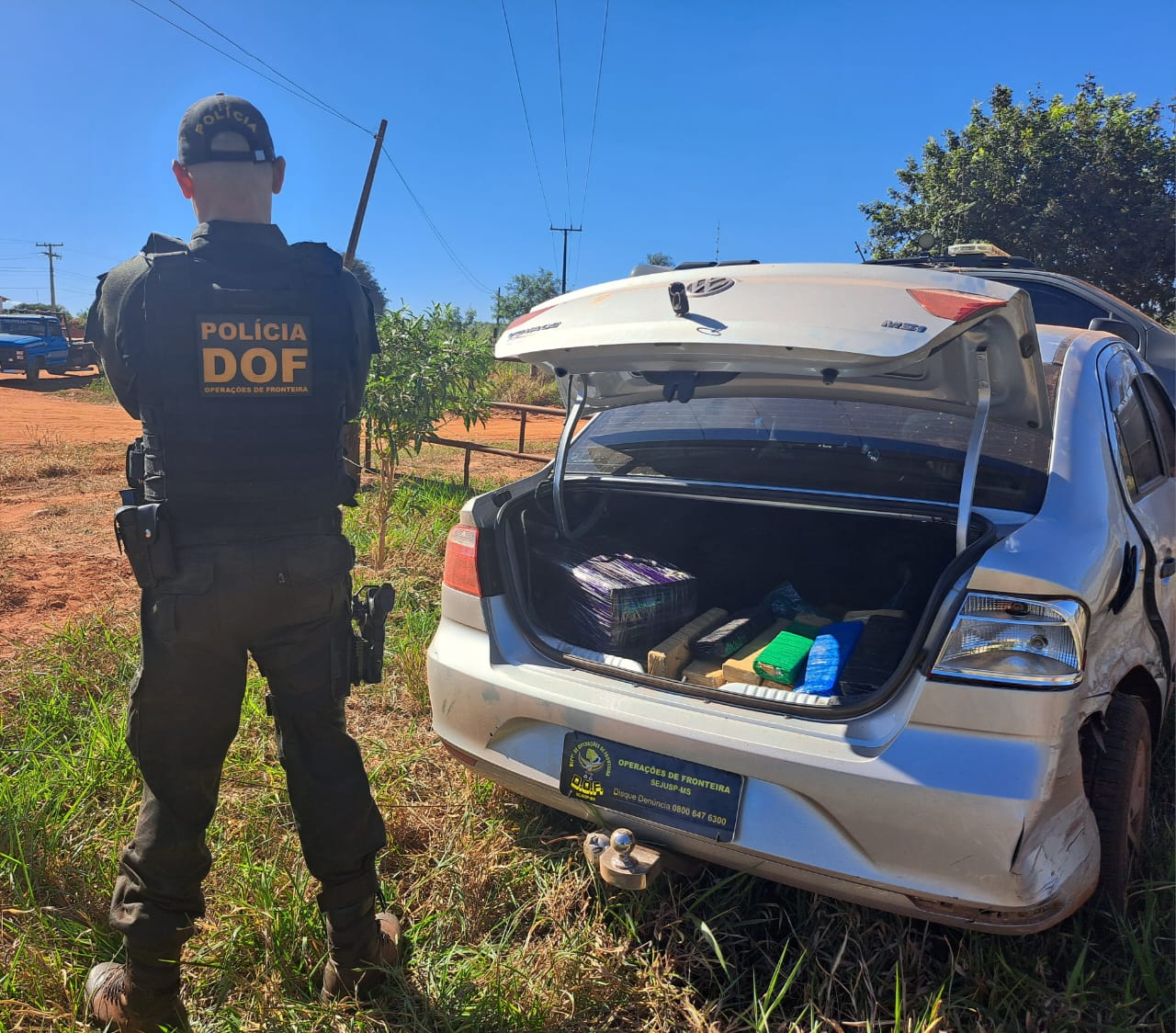 Policiais militares do DOF (Departamento de Operações de Fronteira) apreenderam, na tarde deste sábado (11), um veículo VW Voyage de cor prata carregado com 77 quilos de maconha. Na ação ninguém foi preso.
