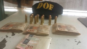 Anderson Julio Ferreira(29) morador em Uberlândia/MG, foi preso por uma das equipes do DOF, no final da tarde dessa segunda(15), por posse irregular de arma de fogo. O fato ocorreu por volta das 17hs, em bloqueio policial na BR 463, na saída de Ponta Porã para Dourados, sendo abordado um ônibus que fazia o itinerário Assumpção/PY X Brasília/DF, e em vistoria as bagagens do passageiro Anderson, foram localizadas 10 munições calibre 38 de procedência paraguaia. Foi apreendido ainda com o vigia R$ 3200,00 que ele seria usado para compra uma arma de fogo. O caso foi registrado como posse irregular de arma de fogo na delegacia de Ponta Porã/MS.